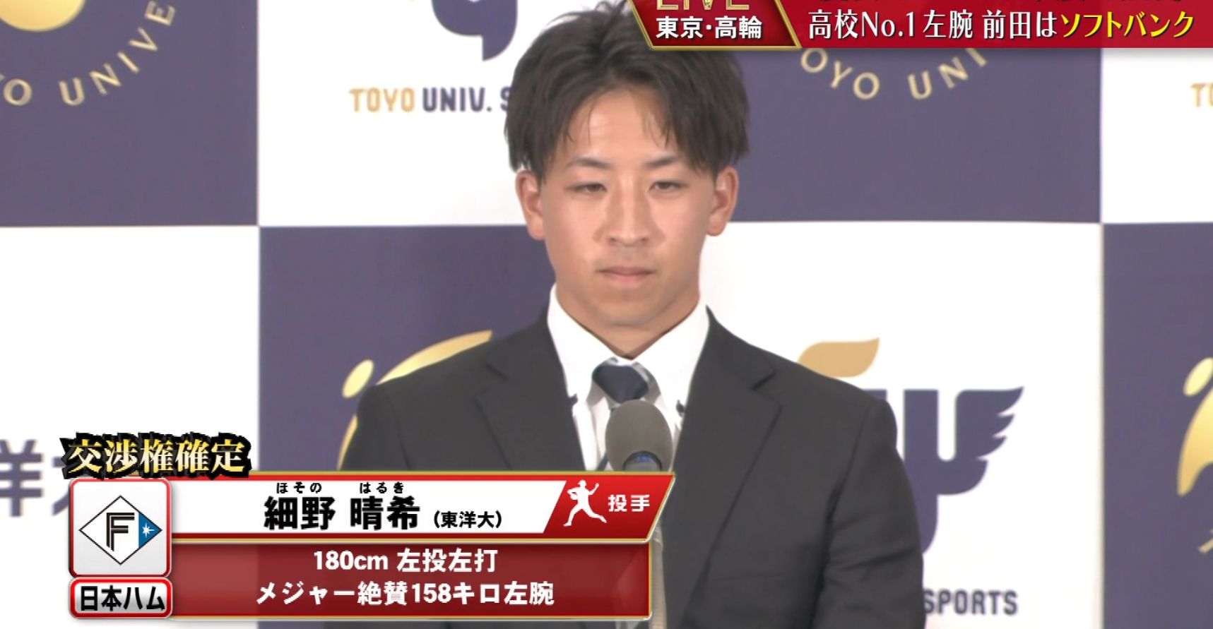 【ドラフト速報】東洋大・細野晴希、ハズレハズレ1位で競合!日本ハムが交渉権獲得