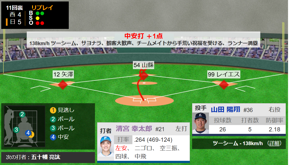 北海道日本ハム 清宮幸太郎 選手のサヨナラタイムリーヒット👏