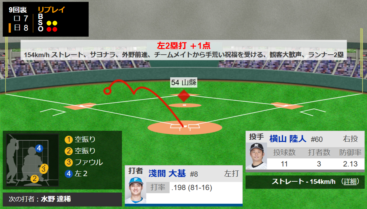 北海道日本ハム 淺間大基 選手のサヨナラタイムリー2ベースヒット✨