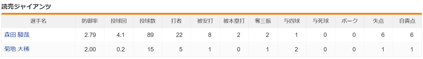 巨人、大量得点の翌日は大量失点…森田5回途中KO