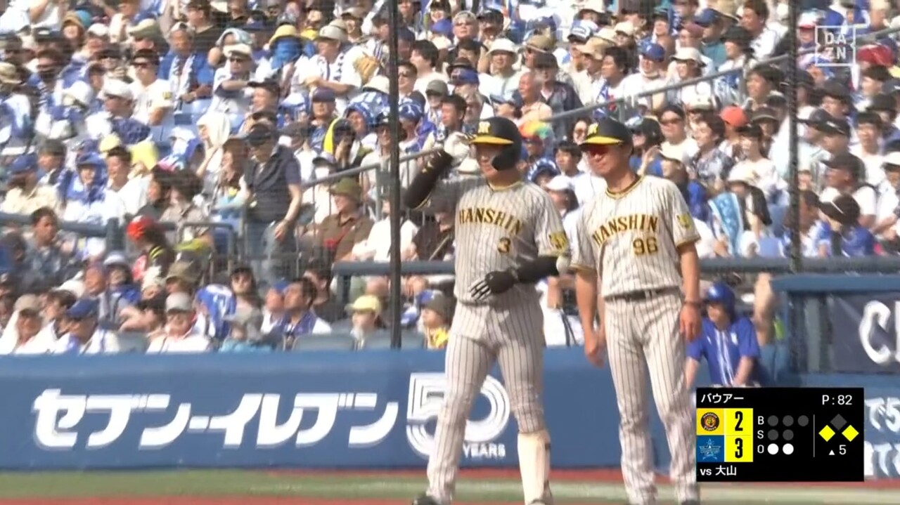 【首位攻防戦】阪神反撃開始!前川&大山がバウアーから連続タイムリーで1点差に