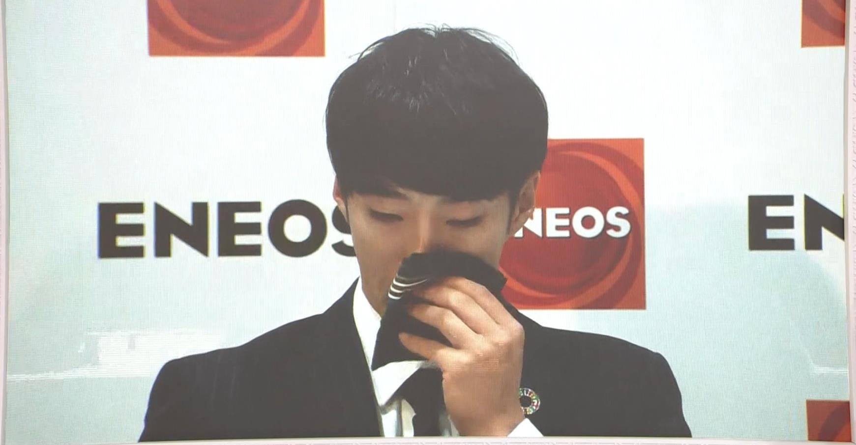 神奈川・川崎市コンベンションホールで会見に応じた度会の涙は止まらなかった。何度も、ハンカチで涙を拭った。