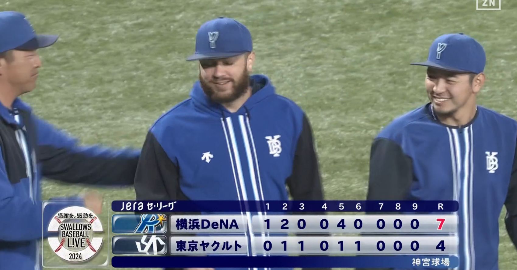 DeNAが5回に打者9人の猛攻で4点を奪い、ヤクルトに勝利。連敗を5で止めました。