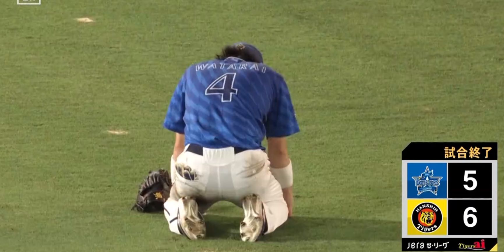 【悲報】DeNA度会、崩れ落ちる…