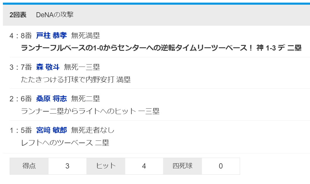 DeNA戸柱、満塁走者一掃逆転タイムリーwwwwww