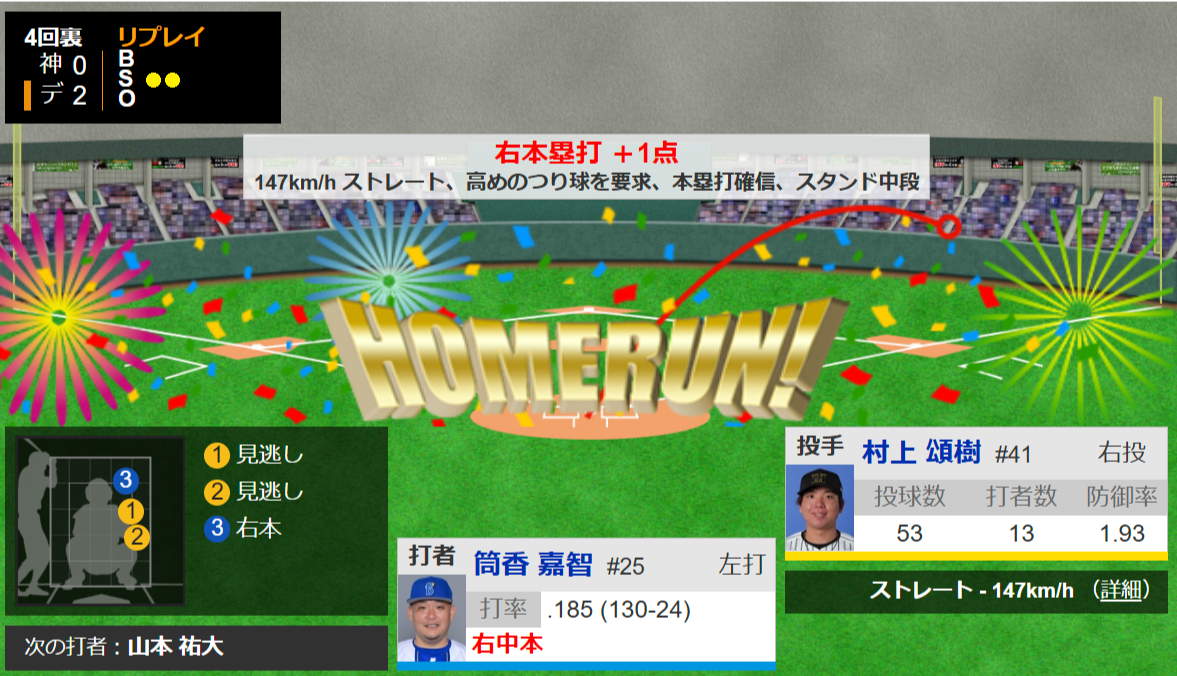 インコースの難しい球を上手くさばいた打球は右中間へ🌈#筒香嘉智 選手が2試合連続となる第9号ソロホームランを放ちベイスターズが先制🎆