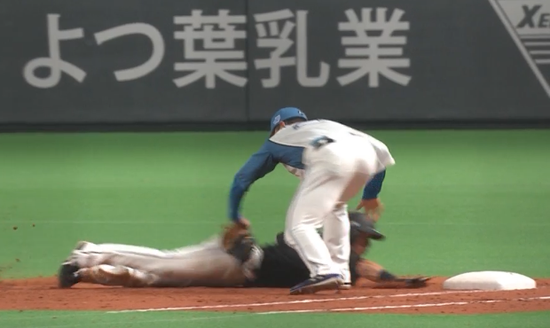 牽制セーフの判定も #清宮幸太郎 選手がすかさずアピール👀