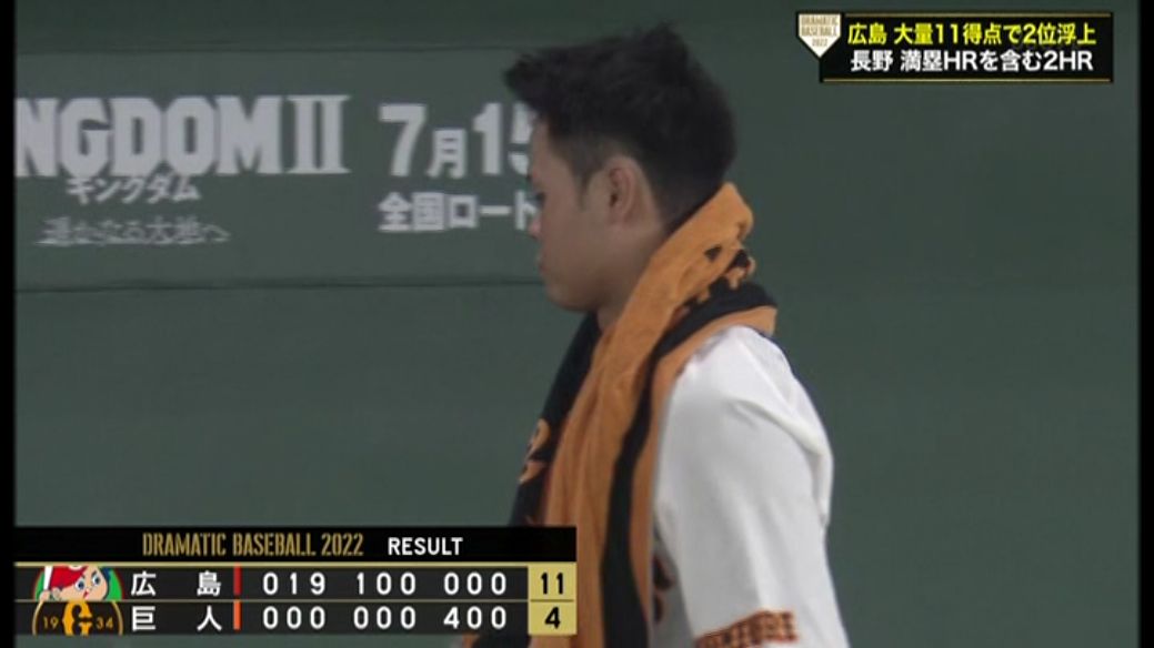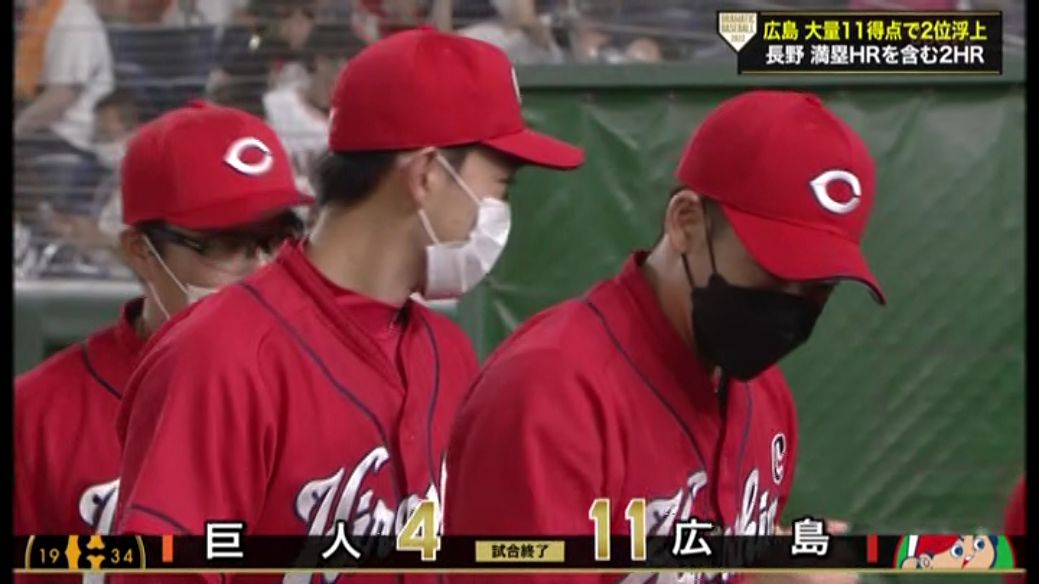 巨人は投手陣が4回までに11点を失うなど今月3度目&今季9度目の2桁失点で広島に完敗。今季4度目の4連敗を喫して3カード連続負け越しとなり、4年ぶりの借金3となった。これで広島に抜かれ、2位陥落は確定。この後にナイターで行われる他会場の結果しだいでは2018年7月6日以来4年ぶりの5位に転落する。