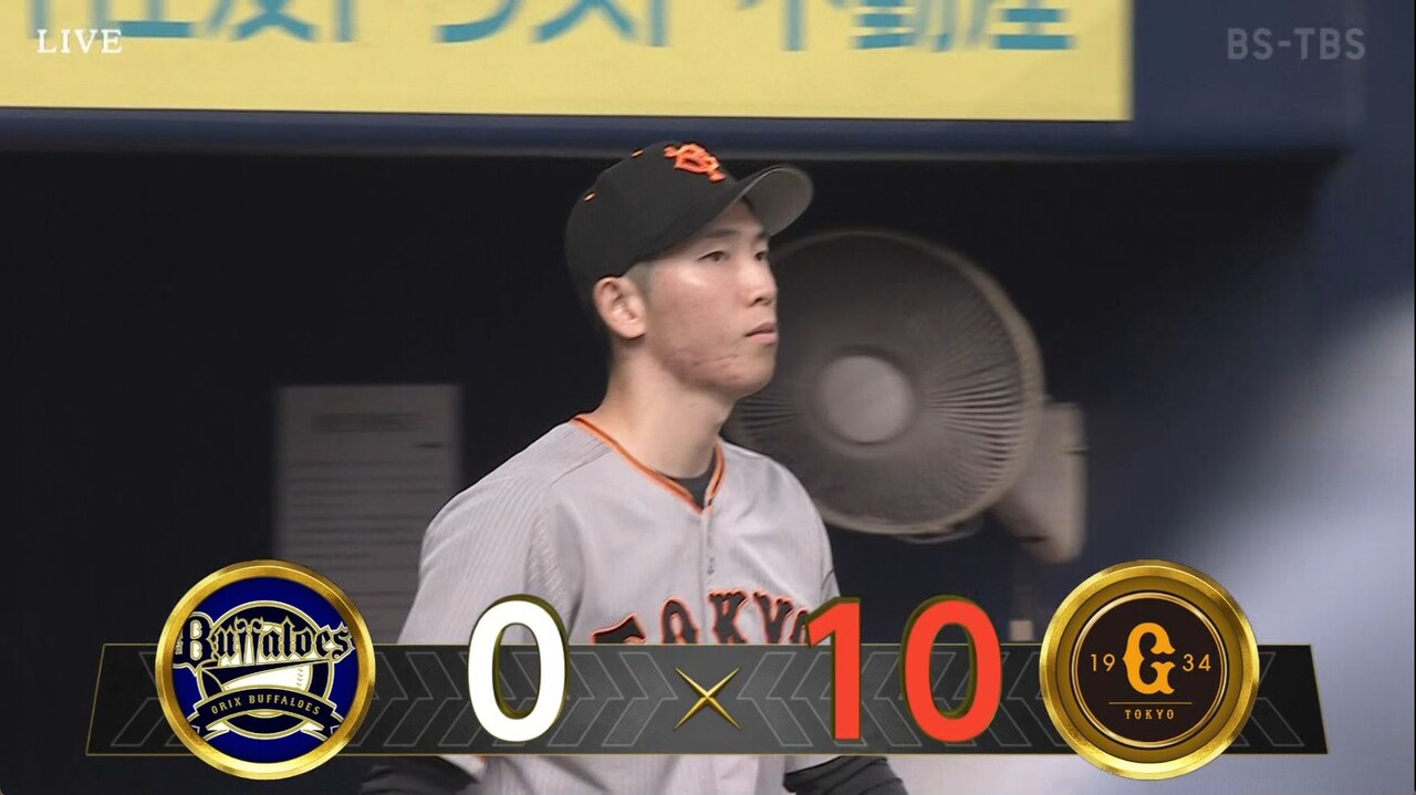 打線は一回2死一塁から岡本和が中前打を放ち、オリックスの中堅手・広岡の失策も絡んで1点を先制した。 四回は無死一、三塁からウォーカーの左前適時打で1点を追加した。六回にはウォーカーが中越えの5号ソロを放った。ウォーカーは八回無死二、三塁の場面でも左前適時打。