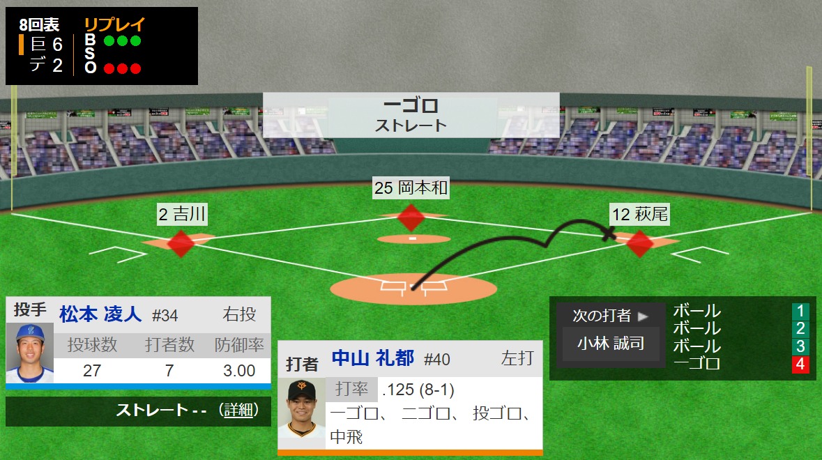 【悲報】巨人中山、1試合に3回満塁で回ってきて3回とも内野ゴロ