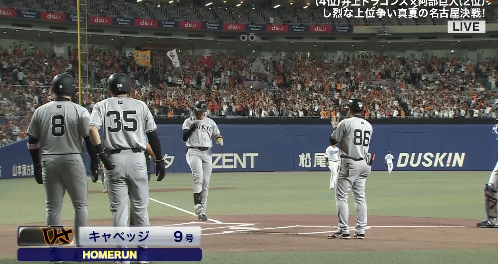 巨人キャベッジ、中日大野から初回先制スリーランホームラン!!