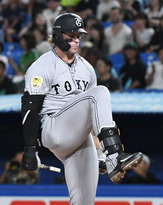 巨人のトレイ・キャベッジ外野手のフラストレーションが爆発。空振り三振に倒れた直後、バットをへし折り、球場は騒然となった。