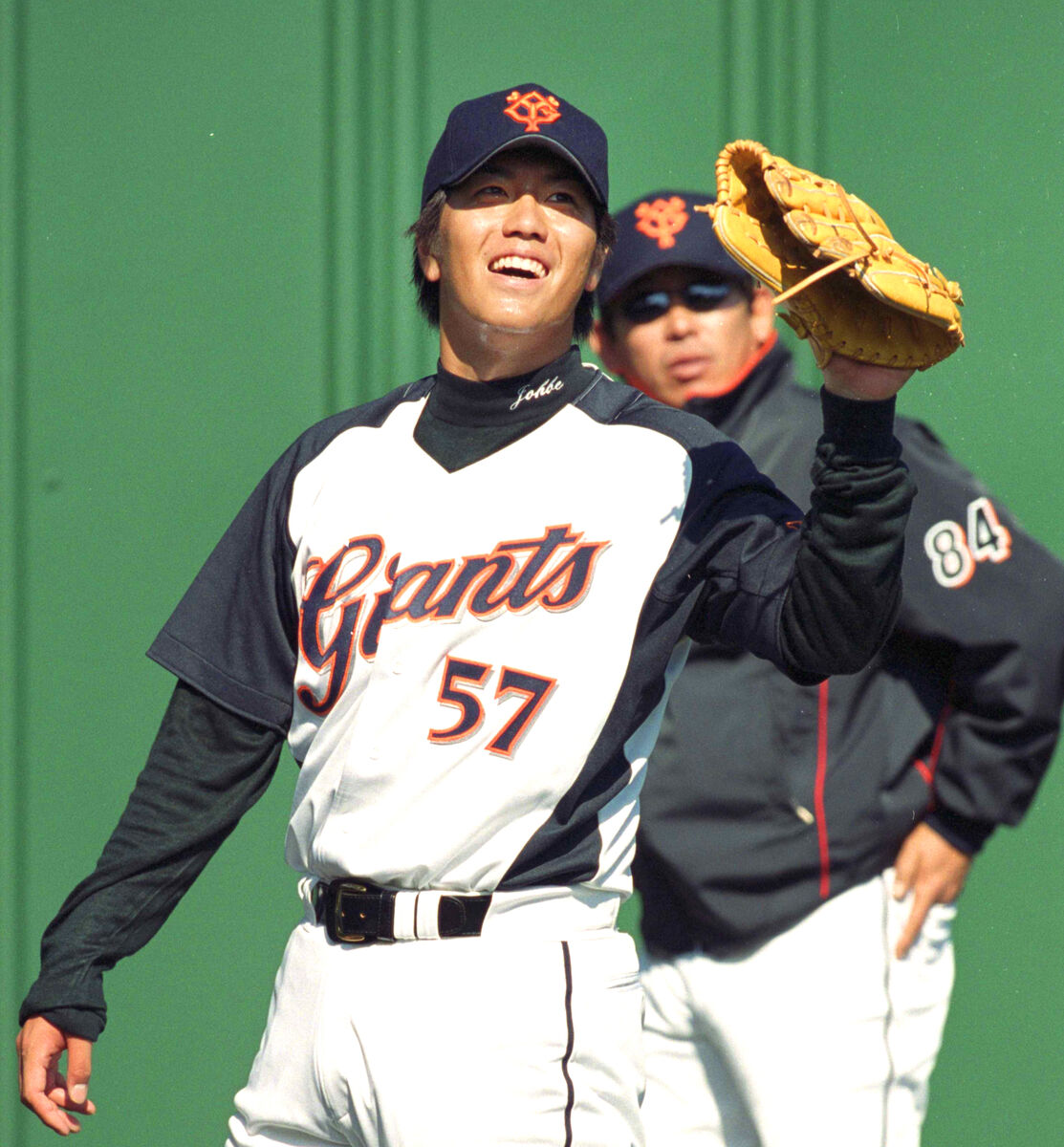 「57」の條辺剛。99年のドラフト5位で徳島・阿南工から入団した本格右腕だ。2年目の01年、長嶋茂雄監督の発案で開幕直前に背番号が「96」から「57」に変更された。