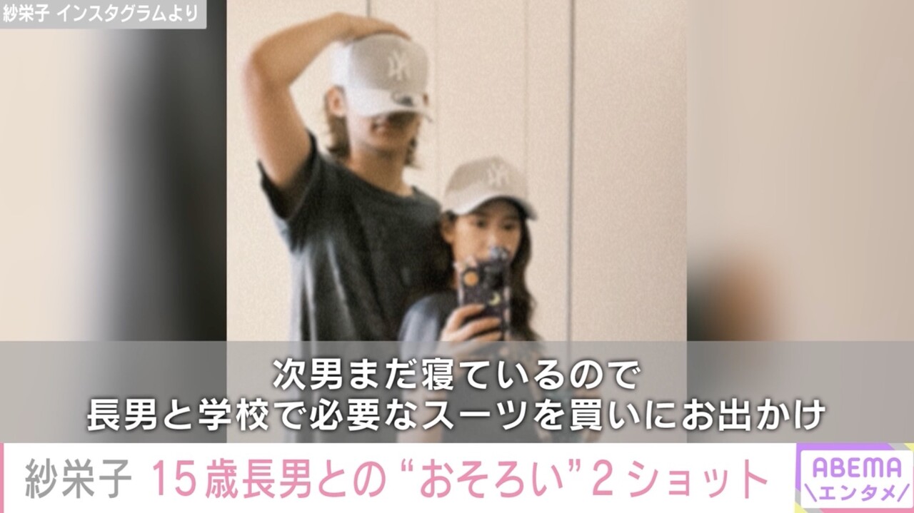モデルの紗栄子(36)が15歳の長男とお揃いのキャップを被った2ショットを披露した。