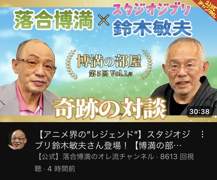 落合博満さん、YouTubeでジブリ鈴木敏夫さんと対談