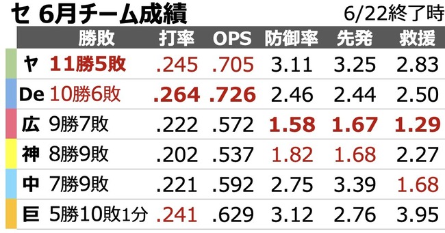 【悲報】セリーグ月間順位表、もうめちゃくちゃ 1: 名無しさん 2024/06/23(日) 08:08:05.93 ID:NzEX3Kzc0 セリーグ 6月ここまでの月間チーム成績です。 pic.twitter.com/c0tJQ6Uznr— つばめ (@chikupn2896) June 22, 2024 続きを読む