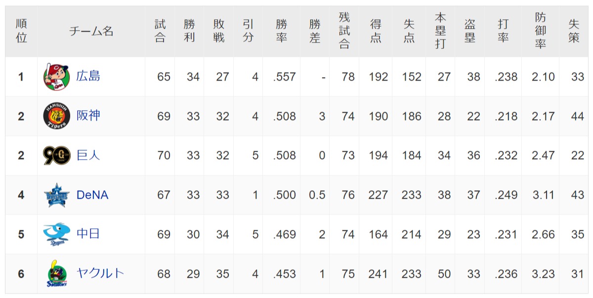 【謎】広島ファン「なぜ首位なのか分からない」阪神と巨人ファン「なぜAクラスなのか分からない」 1: 名無しさん 2024/06/26(水) 16:26:18.11 ID:Ty8qD+0u0 1位広島 34勝27敗 2位阪神 33勝32敗 2位巨人 33勝32敗 4位横浜 33勝33敗 5位中日 30勝34敗 6位ヤク 29勝35敗 続きを読む