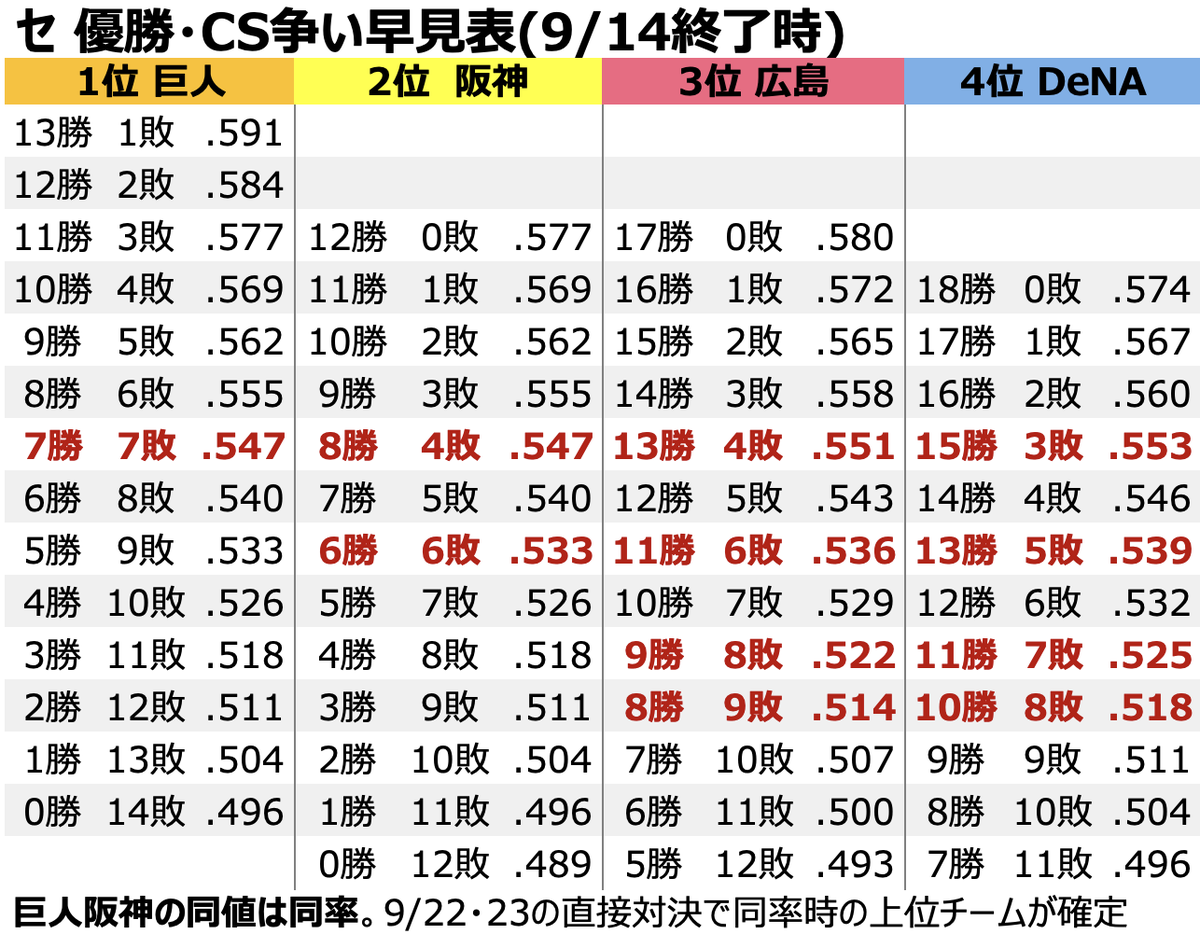 最新のセ・リーグ優勝&CSラインwwwwwwww