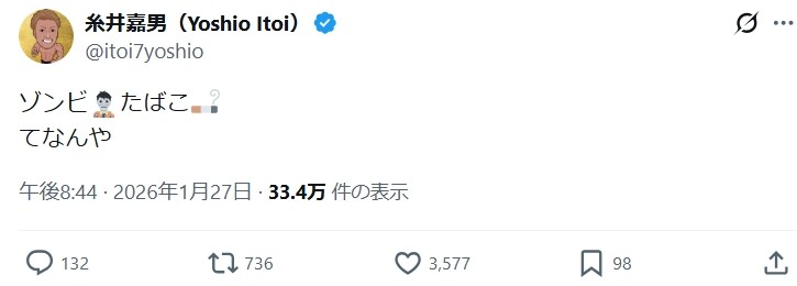 — 糸井嘉男(Yoshio Itoi) (@itoi7yoshio) January 27, 2026