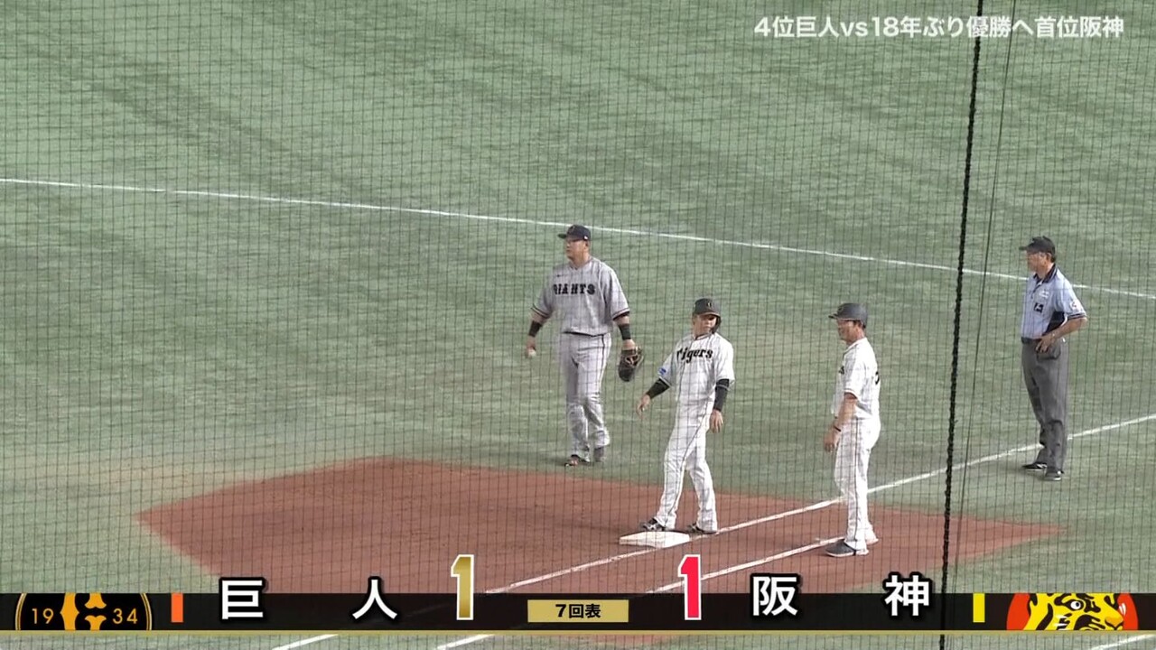 阪神が7回に逆転!戸郷の一塁牽制球を中田翔が捕球ミス→近本ツーランホームラン