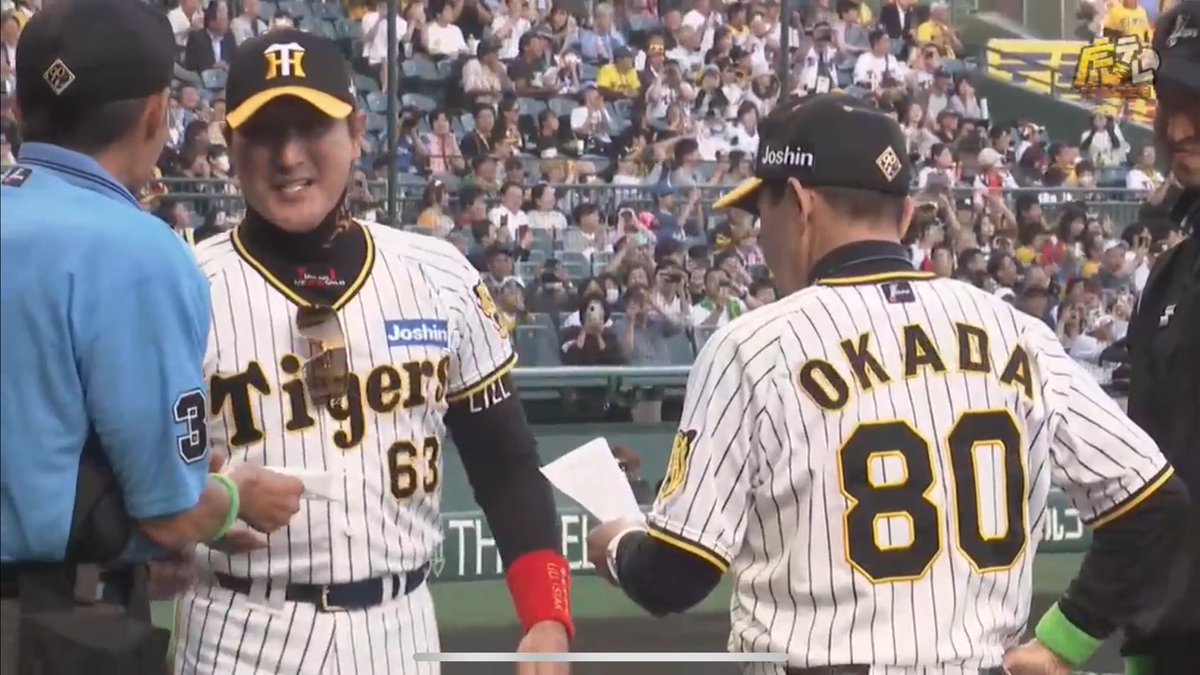 日本ハムの新庄監督が、試合前のメンバー表交換でサプライズを実行した。試合開始前の甲子園に大きなどよめきが走った。