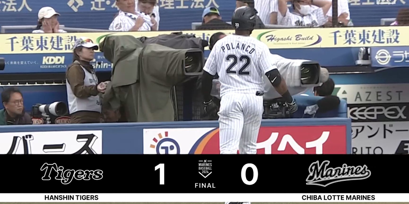 先発・才木が今季3度目の完封勝利。初回は失策などで2死三塁を招いたが、ソトを空振り三振に斬った。2回以降は5回2死に中村奨に遊ゴロ内野安打を浴びるまで1人の走者を許さなかった。9回は前日まで4試合連続でこの回に1点差を追いついたロッテ打線に2安打を許して無死一、二塁のピンチを招いたが、後続を断った。わずか被安打6の快投で、今季2度目の「1―0完封」だ。