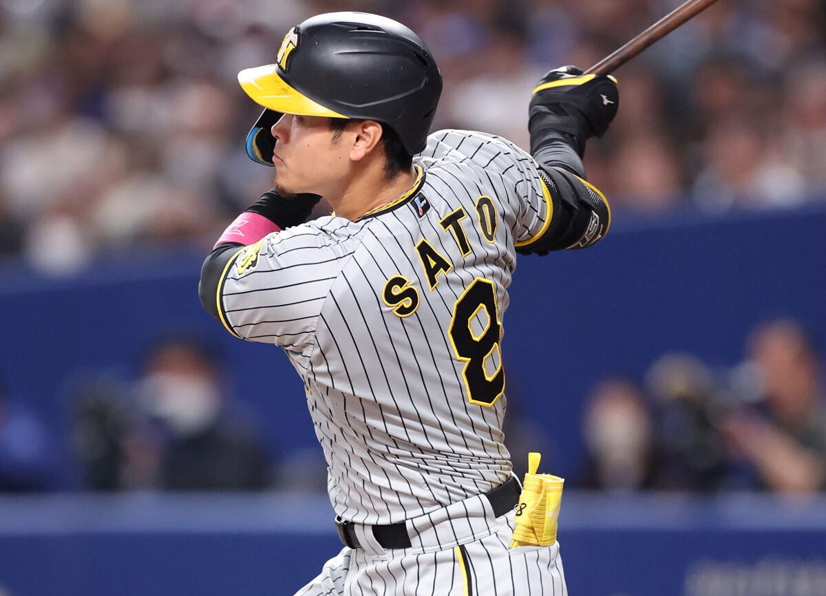 続く大山の中前適時打で1点を追加。さらに無死一塁から佐藤輝が左中間へ2試合連発となる13号2ランを放ち、初回に4点を先制した。