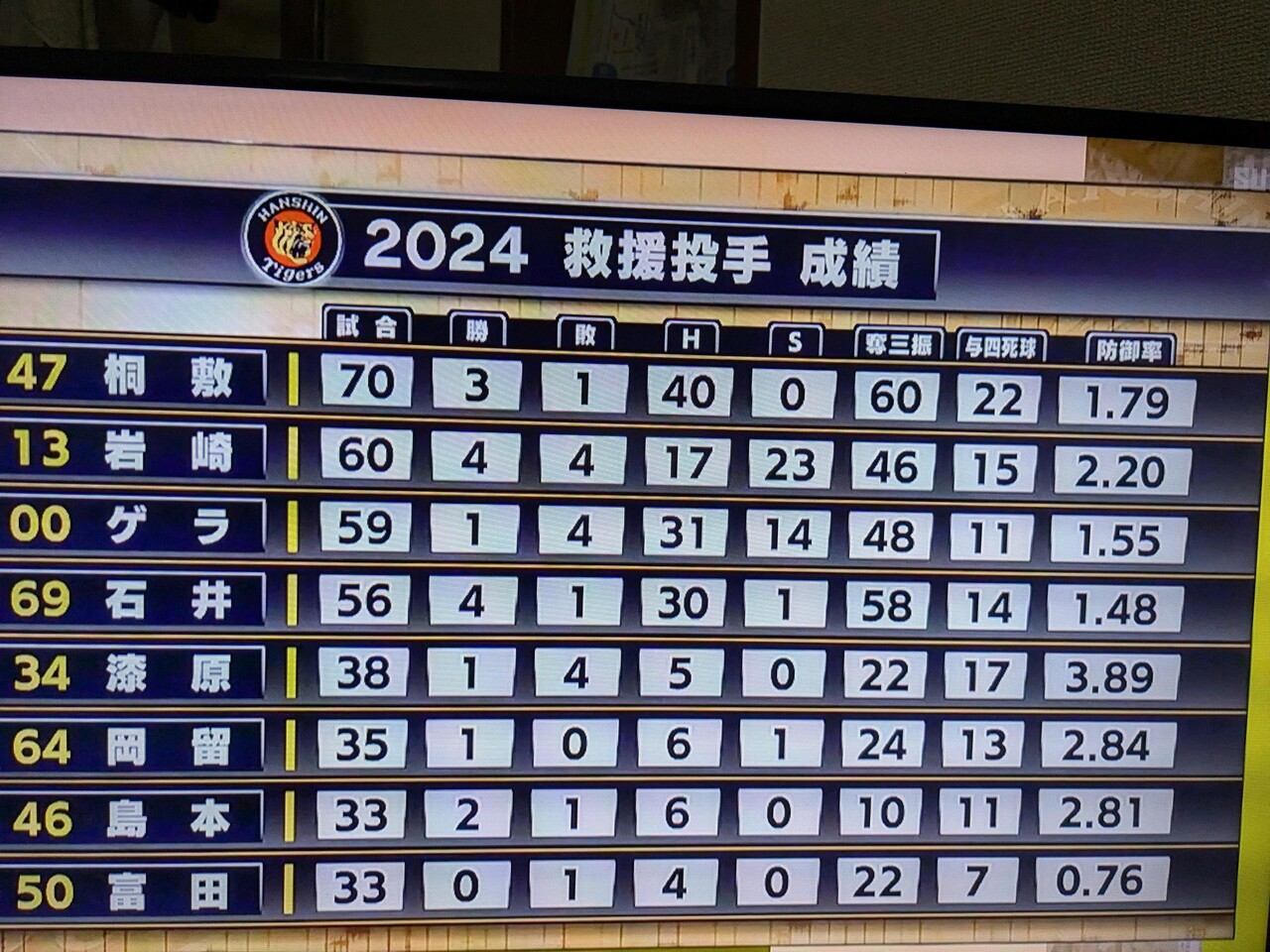 【阪神】桐敷拓馬 70試合 3勝1敗40H 防1.79