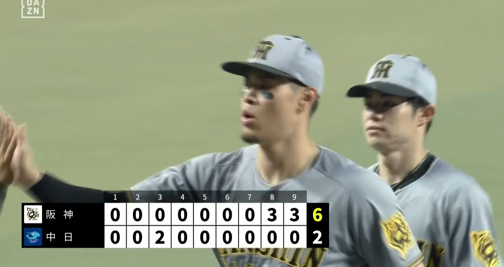 阪神が劇的な1発で中日に逆転勝ちし、優勝マジックを1つ減らして33とした。両リーグ最速で60勝に到達し、貯金も今季最多23とした。
