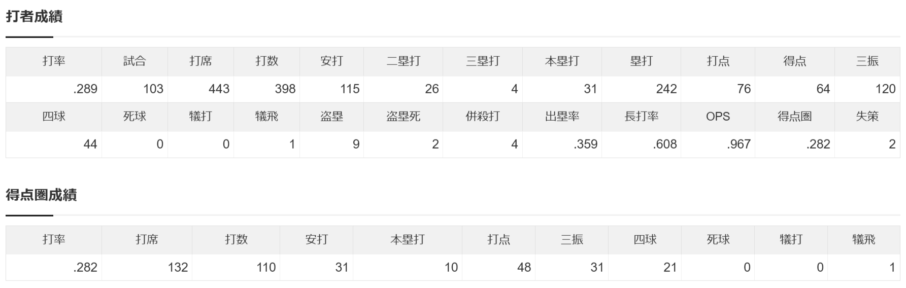 佐藤輝明(神).289 31本 76打点 OPS.967 9盗塁 2失策