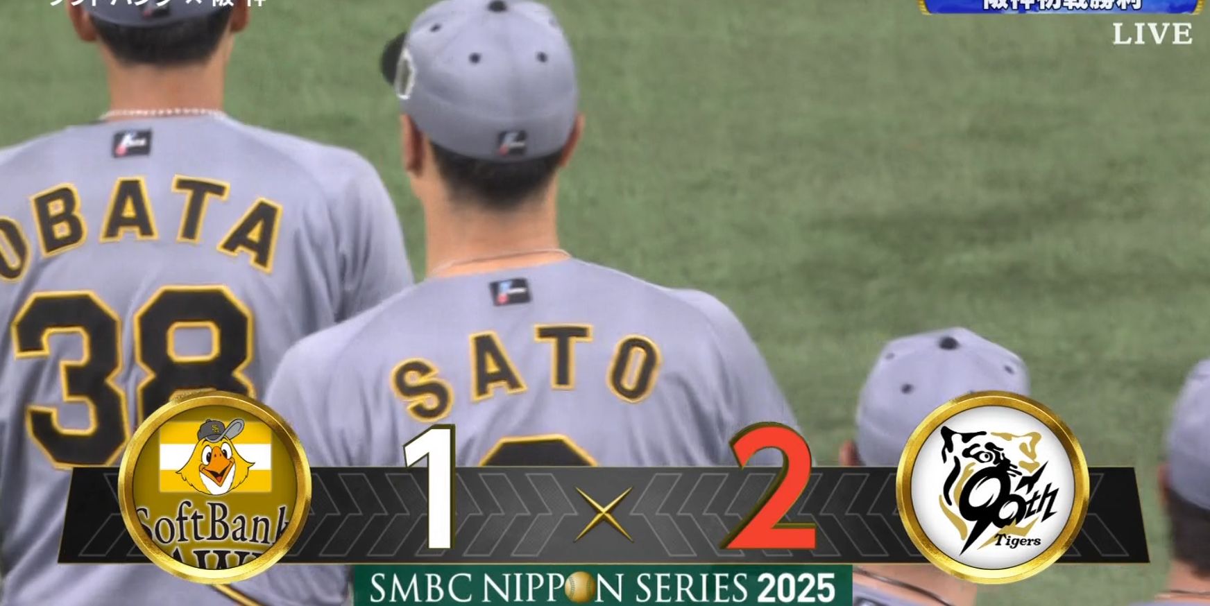 「SMBC日本シリーズ2025」第1戦(4戦先勝)、福岡ソフトバンクホークス対阪神タイガースの試合が25日、みずほPayPayドーム福岡で開催。1点を争う好ゲームは、阪神が2-1で逆転勝利。2年ぶりの日本一奪還へ向け、大事な初戦を制した。