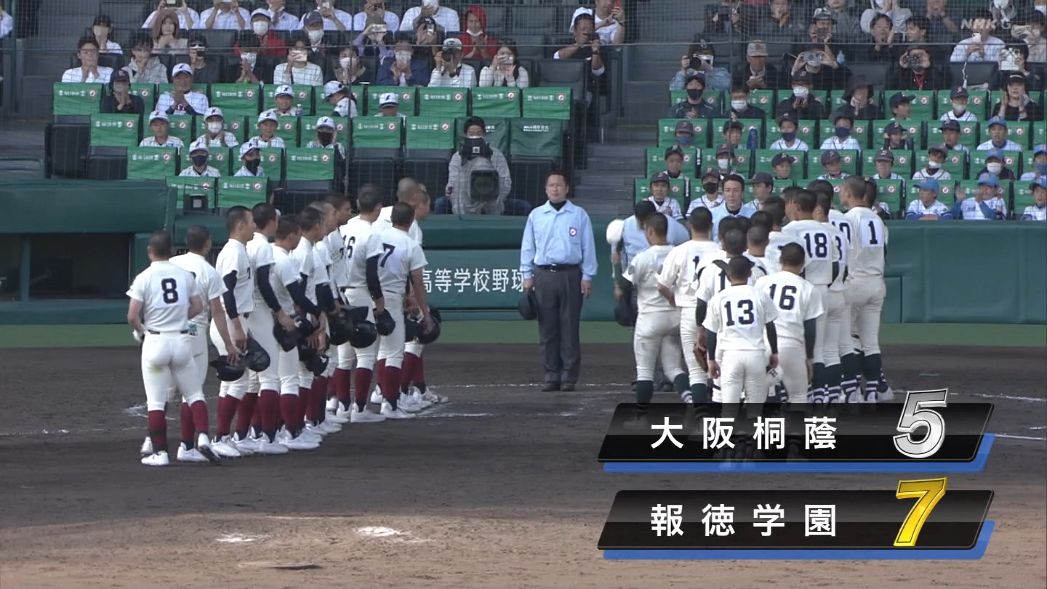 大阪桐蔭は3回に5点を先制するも、その裏、先発した南恒誠投手(3年)が2点を返され、7回には3失点。7回途中に急きょエース前田悠伍投手(3年)をマウンドに送って同点で凌いだものの、その後、前田が報徳学園打線に勝ち越しを許し、準決勝で姿を消した。