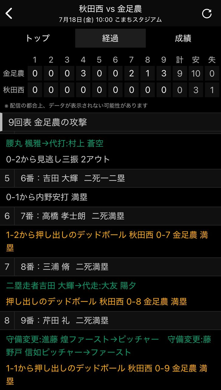 金足農業、6―0リードの9回で3者連続押デッドボール食らう