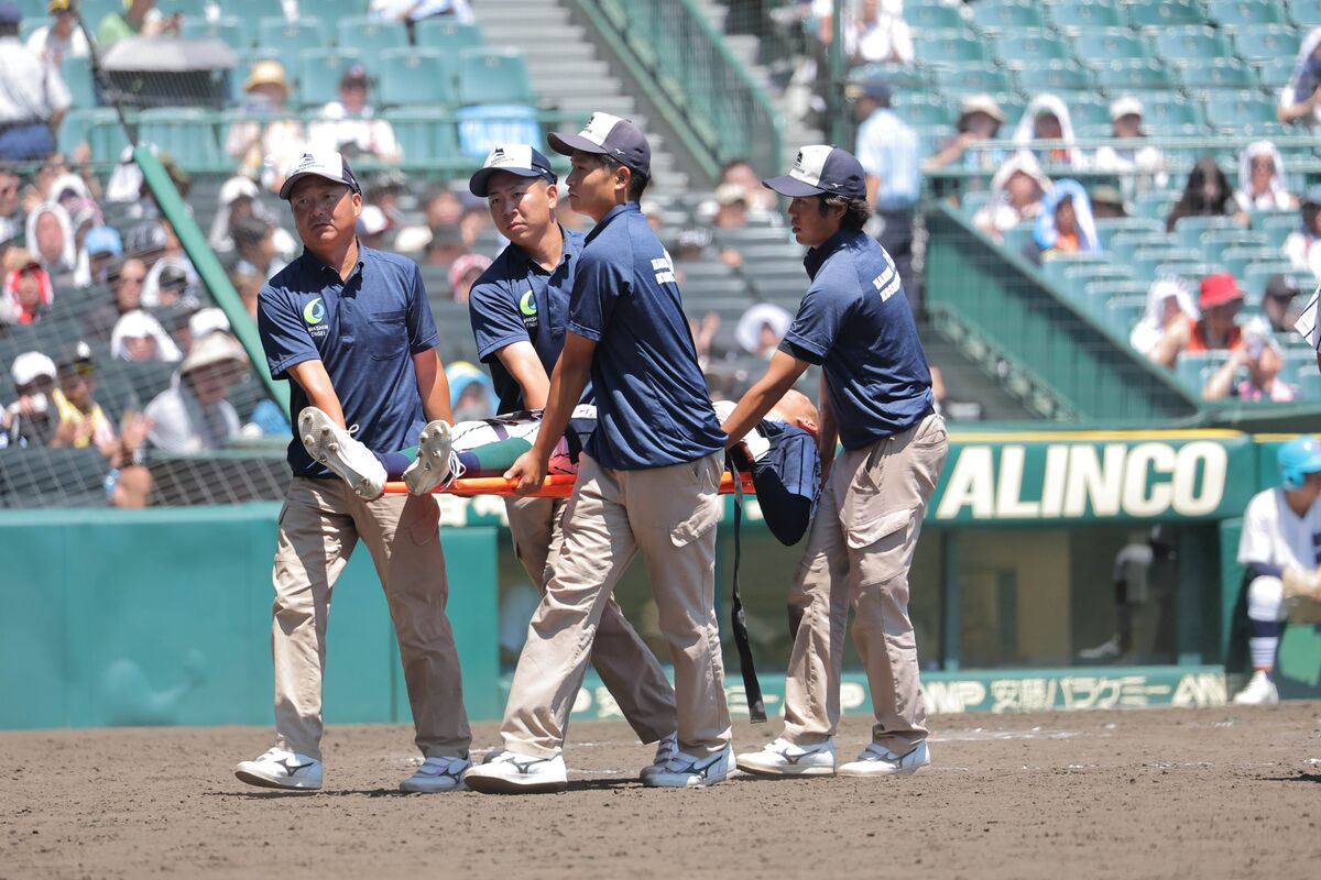 【甲子園】2試合連続のアクシデント 熱中症か 足に変調 担架で運ばれる
