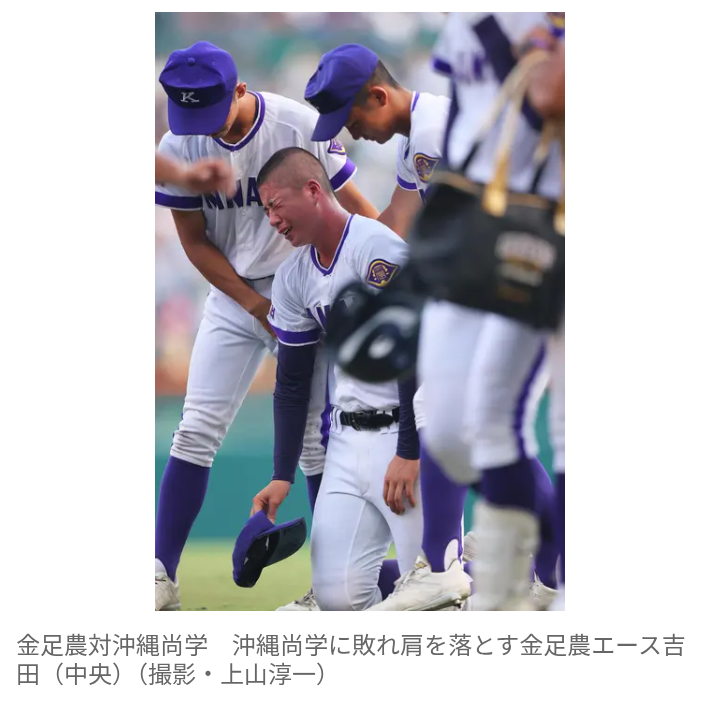 初戦敗退した金足農(秋田)・吉田大輝投手(3年)が泣き崩れた。