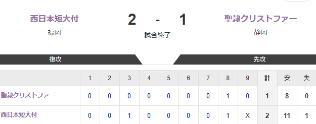【高校野球】2回戦 聖隷クリストファー 1-2 西日本短大付 追いつかれた直後に勝ち越し 西日本短大付属が3回戦進出