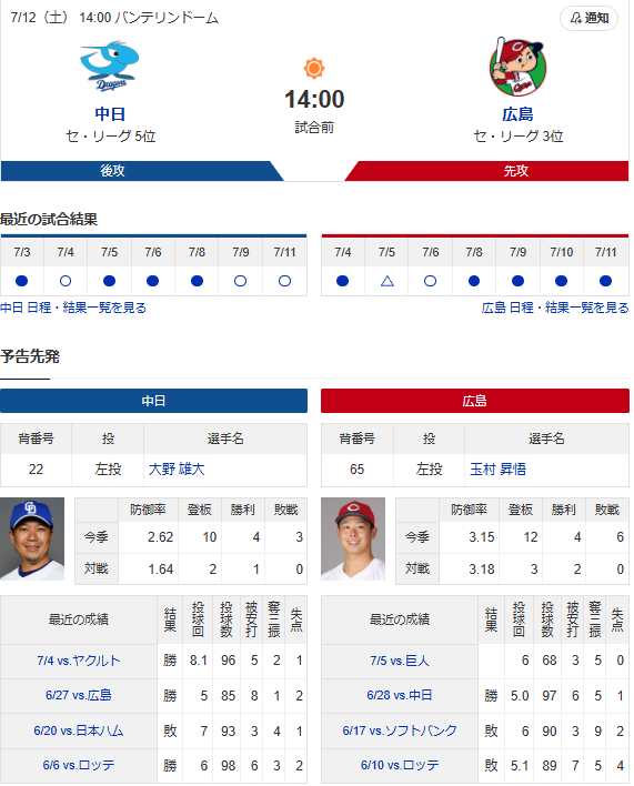 【ドラゴンズ実況】 7/12 中日 vs 広島(バンテリンドーム)14:00~ 先発:大野雄大【中継:東海 Jスポ2 DAZN他】 引用元:https://baseball.yahoo.co.jp/npb/game/2021029540/top 続きを読む