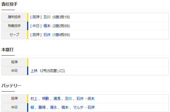 【試合結果】 8/6 中日 2-3 阪神 延長10回橋本乱調、マルテ押出し死球・・3連敗で借金10 引用元:https://baseball.yahoo.co.jp/npb/game/2021029642/top 続きを読む