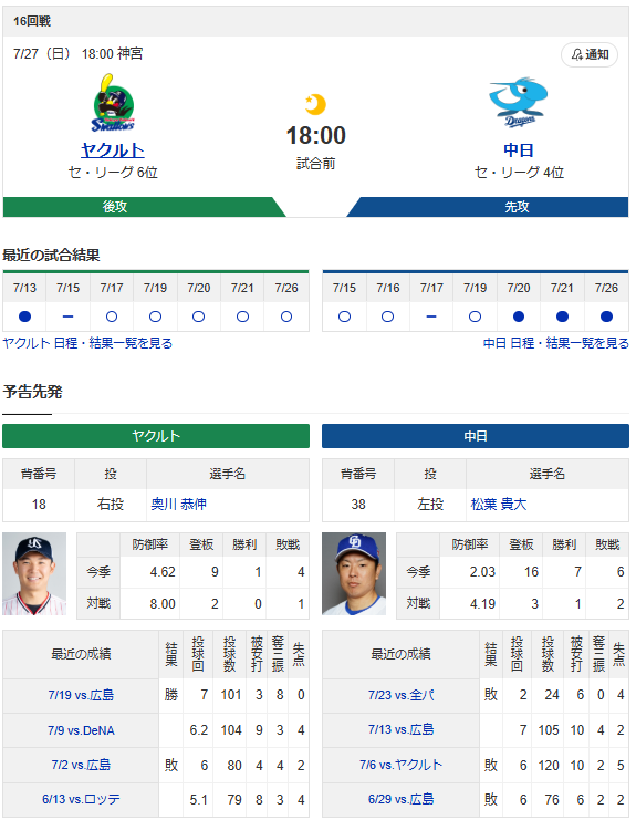 【ドラゴンズ実況】 7/27 中日 vs ヤクルト(神宮)18:00~ 先発:松葉【中継:フジONE DAZN他】 引用元:https://baseball.yahoo.co.jp/npb/game/2021029592/top 続きを読む
