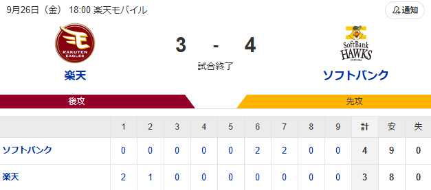 イーグルス対ホークス 18:00~(楽天モバイル)