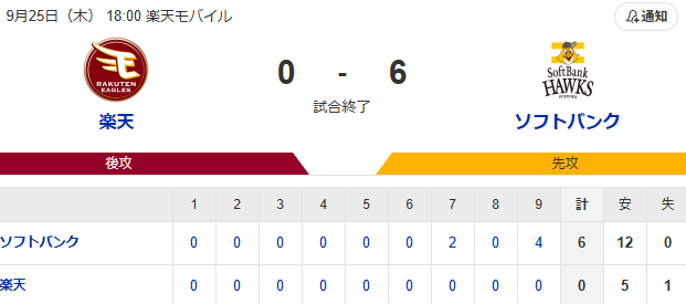 イーグルス対ホークス 18:00~(楽天モバイル)