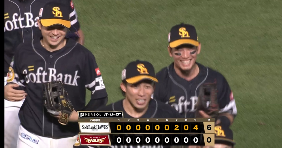 【0-6】ホークス勝利!!大関7回無失点の好投 栗原&野村がタイムリーを放つ活躍 優勝マジックは2!!!!!!