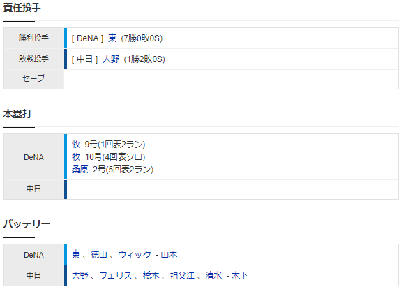 今月の中日勝敗