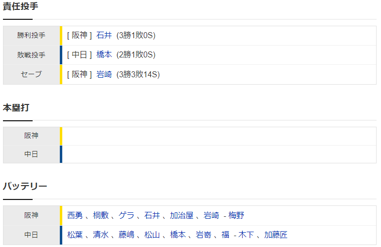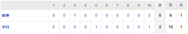 中日は阪神に延長戦の末敗れ、今季3度目の同一カード3連勝を逃した。また37勝42敗6分の借金5となり、4位阪神とのゲーム差を4に広げられた。