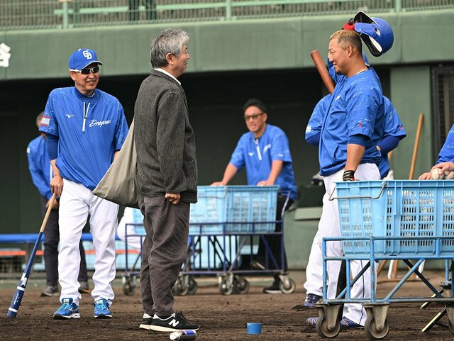 元コーチ柏原純一氏が立浪監督と久々対面 元弟子・中田翔には「金髪はアカンやろ!」中田翔「まだ生きてたんですか」 1: ニーニーφ ★ 2024/02/13(火) 00:19:33.44 ID:7+sac61c9かつて1996~97年には中日で一軍打撃コーチも務めた経験もある氏は、まずは当時の〝部下〟だった現指揮官・立浪和義監督(54)にあいさつ。旧交を温めると、そんな指揮官に促され、今度は2014年から2年間、日本ハムで一軍打撃コーチを務めた際の愛弟子となるプロ17年目・中田翔内野手(34)の元へ。練習中だった中田は、柏原氏の存在に気がつくとバットスイングの手を止め、人懐こい笑顔で「まだ生きてたんですか?」とニヤリ。手袋を外して、氏のほうへ手を差し出してきた。 続きを読む