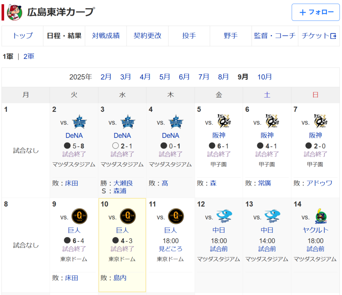 広島は9月20日の巨人戦(東京ドーム)に1-3と敗れ、CS進出の可能性が完全に消滅した。