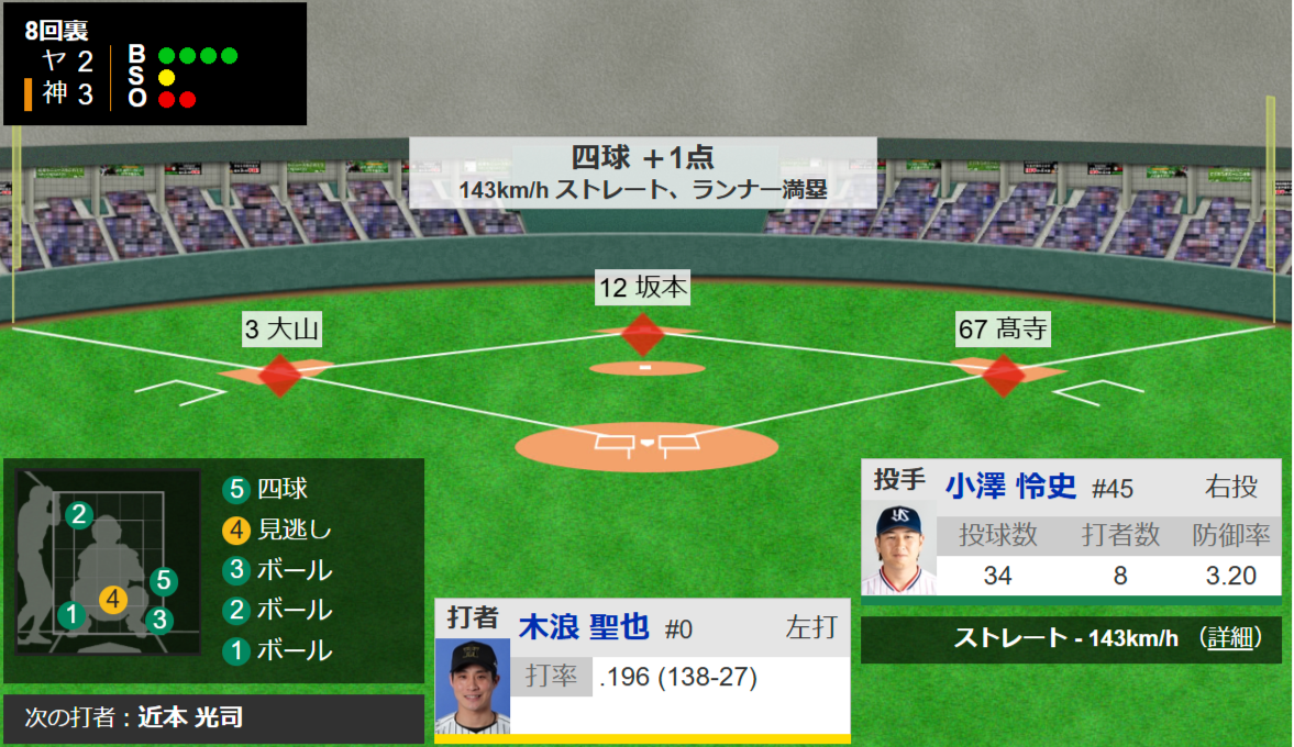 その直後、自らのバットで二塁打を放つと星稜の後輩・内山壮の中前打で3点目のホームを踏むと、主砲・村上の3号2ランも呼び込んだ。