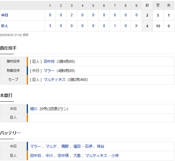 【試合結果】 9/30 中日 2-4 巨人 マラー初回3失点 敗戦も細川20号、岡林猛打賞 引用元:https://baseball.yahoo.co.jp/npb/game/2021036587/top 続きを読む