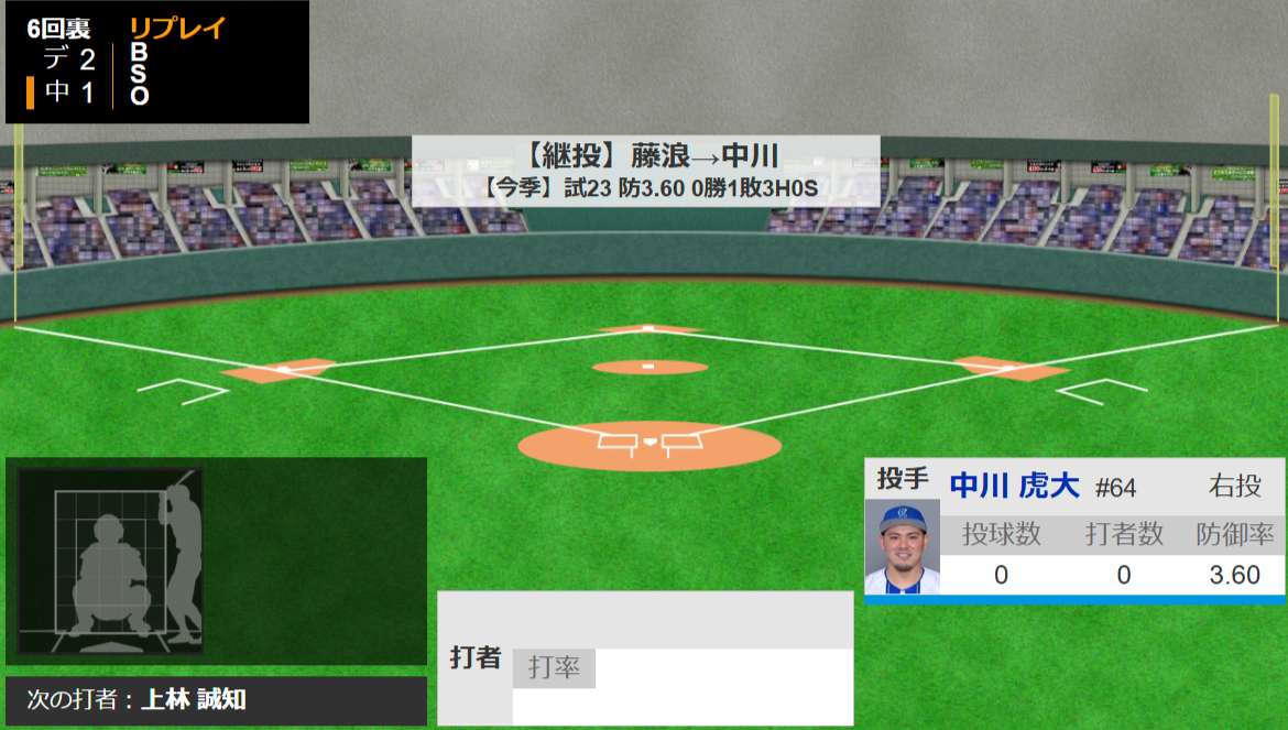 DeNAの藤浪晋太郎投手が日本球界復帰後初先発。5回1失点で勝利投手の権利を手にマウンドを降りたが、直後に2番手の中川虎が上林に同点ソロを被弾した。