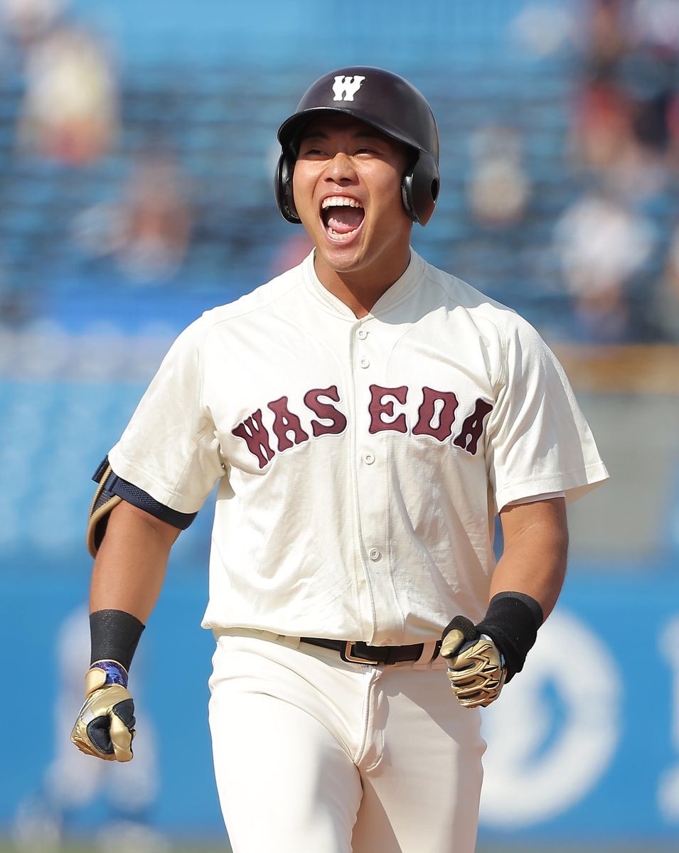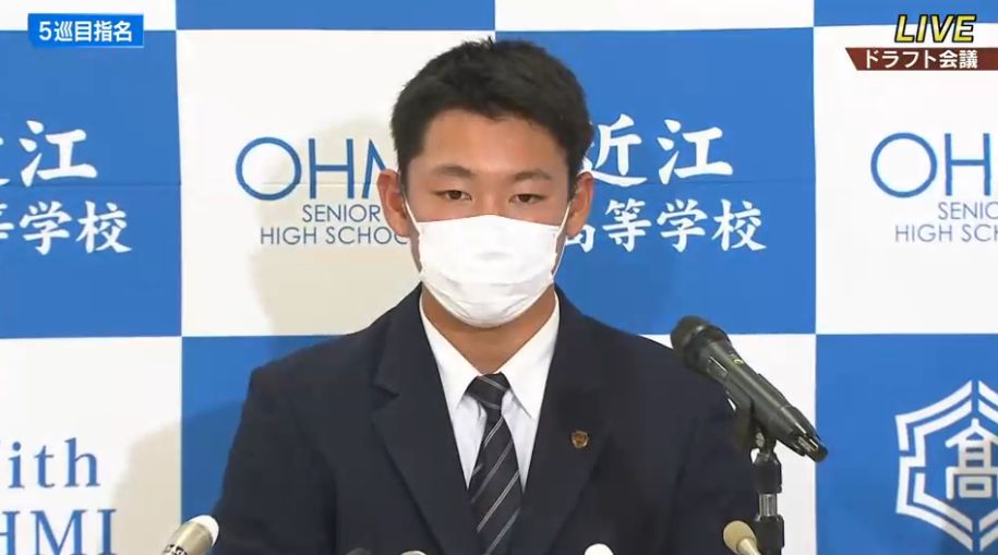 近江では1年秋からエースとして君臨し、今春は準優勝。打撃にも非凡なものがあり、リアル二刀流としてチームを引っ張った。今夏の準々決勝では、高松商・浅野に一発を浴びたものの、世代ナンバー1右腕と呼ばれる逸材。準決勝で下関国際(山口)に敗れ、悲願の初優勝はかなわなかったが、甲子園では春夏通算11勝、115奪三振を記録。11勝は松坂大輔(横浜)に快挙で、15試合にすべて先発するなど通算1721球を投じた「聖地の申し子」だった。